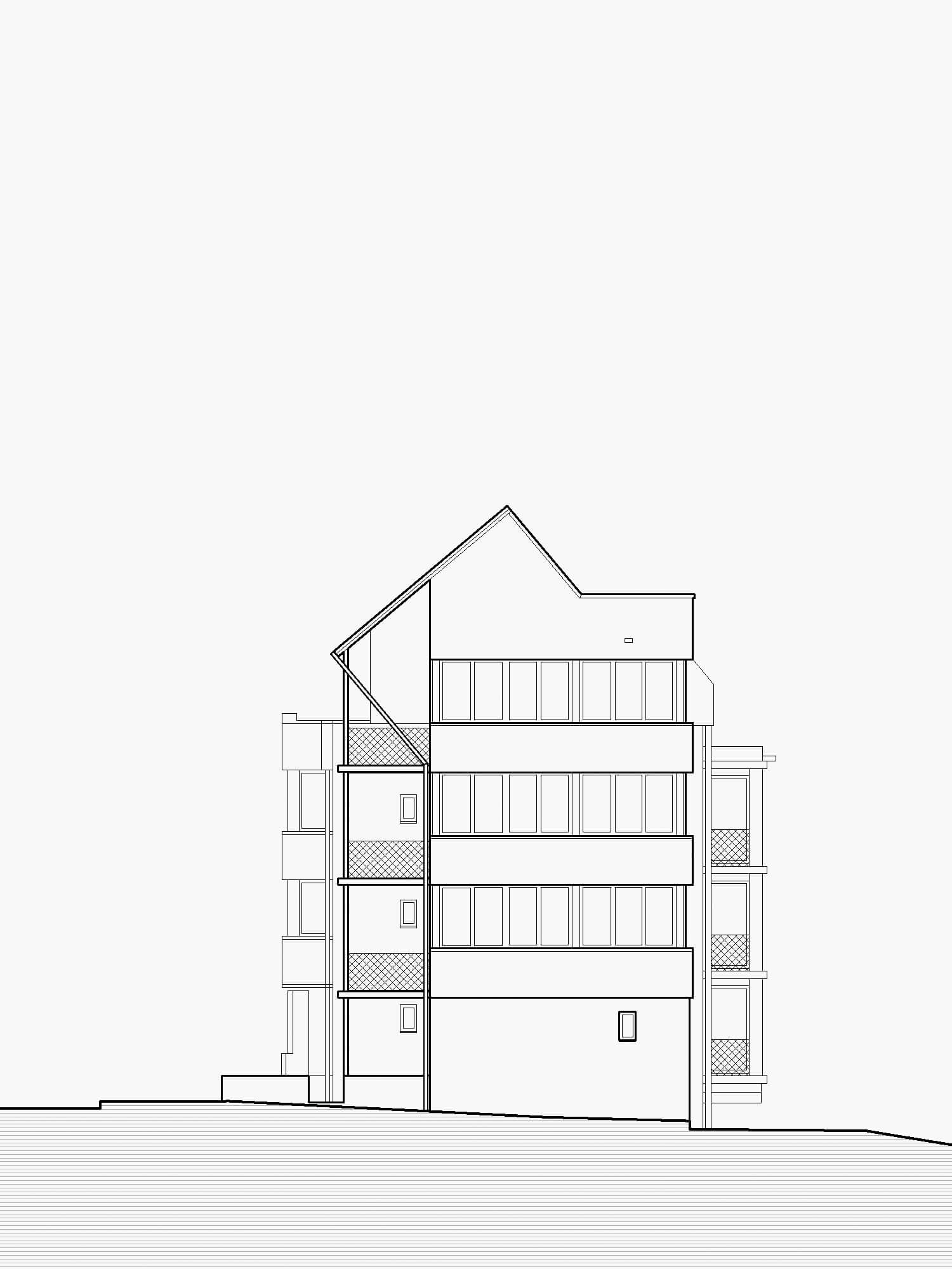 Despite the old and new parts, the building appears as a new entity. The new volumetric additions are set off by their cladding but are embedded in the overall composition of the façades. An interested observer can recognise the old building as a rendered volume. The figural roof gives the building a characterful expression for his next life cycle.