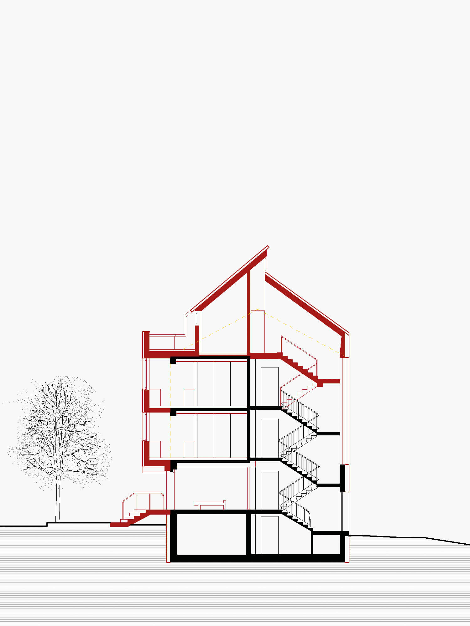Contemporary flats have been inscribed into the narrow floor plans, with a variety of views, different room proportions and varying openings. Different ways through the apartments and split-levels make them feel more spacious.